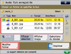 Sélectionner le fichier souhaité → appuyer sur [Modifier fichier].