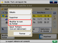 Pour modifier le nom du fichier, appuyer sur [Modifier nom du fichier].