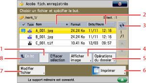 Pour supprimer les fichiers mémorisés sur le support mémoire. Il est possible de sélectionner et de supprimer jusqu'à 32 fichiers simultanément.