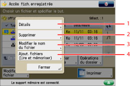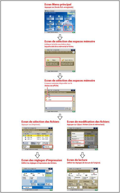 Pour prendre connaissance de la procédure concernant [Ajout. fichiers (Lire et mémoriser)] et obtenir plus d'informations sur l'utilisation de l'écran Lire, voir "Ajout d'un fichier (Lire et mémoriser)" et "Flux des opérations de lecture et de mémorisation".