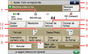 Pour annuler tous les réglages. (La machine restaure les réglages par défaut de l'écran Accès aux fichiers enregistrés.) |