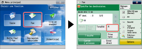 Appuyer sur [Fax] → [R].