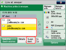 Sélectionner le destinataire à supprimer → appuyer sur [Suppr. dest.].