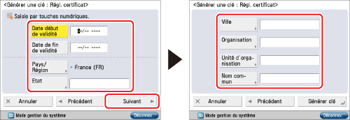Un serveur DNS est nécessaire pour utiliser le nom de domaine complètement qualifié de la machine dans [Nom commun]. Utiliser l'adresse IP de la machine en cas d'absence de serveur DNS.