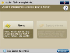 [Réglages du support mémoire] ne s'affiche pas si <Support mémoire> est réglé sur "Non" sous [Réglages d'affichage empl. mémo.]. Pour utiliser [Réglages du support mémoire], régler <Support mémoire> sur "Oui". (Voir "Réglages d'affichage de l'emplacement mémoire".)