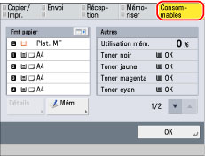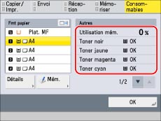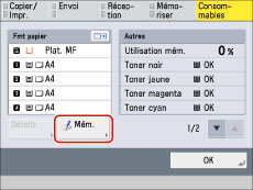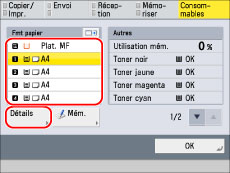 Pour plus d'informations sur des [Réglages papier] particuliers, voir "Mémorisation du type et du format de papier d'une source d'alimentation".