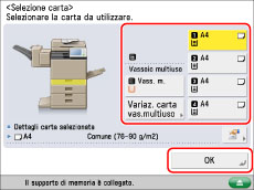 Per maggiori informazioni sui tipi di carta, vedere "Carta/supporti utilizzabili".