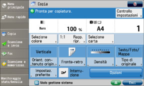 Dopo l'accensione della macchina, è possibile modificare la schermata predefinita visualizzata all'avvio. Per informazioni sulle schermate disponibili che possono essere impostate all'avvio della macchina, vedere "Schermata predefinita dopo avvio/ripristino".