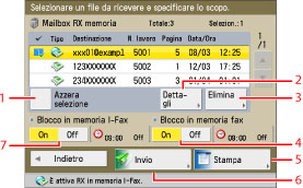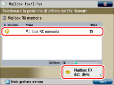 Utilizzare questo tasto per attivare o disattivare il modo Blocco in memoria I-fax per la Mailbox RX memoria.