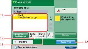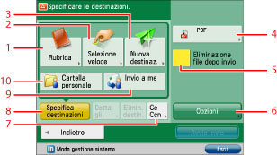 Premere per specificare il proprio indirizzo e-mail come destinazione. L'amministratore può limitare l'invio di e-mail da parte degli utenti generali solo al proprio indirizzo. (Vedere "Impostazione di una destinazione limitata per l'invio di e-mail".)