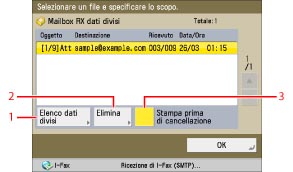 Utilizzare questo tasto per selezionare tutti i file presenti nella mailbox. Quando si seleziona un file, questo tasto viene sostituito dal tasto [Azzera selezione].