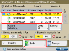 Per cancellare automaticamente il file selezionato dopo l'invio, premere [Eliminazione file dopo invio].