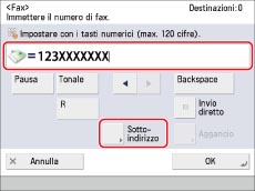 Digitare il numero di fax → selezionare [Sottoindirizzo].