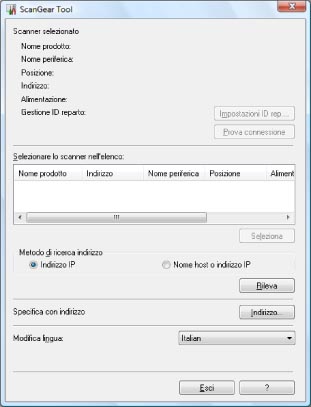 Lo scanner da utilizzare può essere specificato anche selezionando [Indirizzo] e digitando l'indirizzo IP o il nome host della macchina.