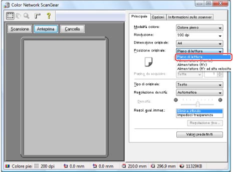 È possibile regolare la luminosità e la densità e specificare l'area di scansione.
