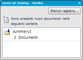 È possibile utilizzare Document Monitor per monitorare le cartelle di destinazione delle hot folder. Configurando le cartelle da monitorare con iW Desktop e abilitando la notifica dei nuovi documenti, quando si trasferisce un documento da una hot folder alla cartella di destinazione appariranno l'icona e la finestra di notifica del nuovo documento.