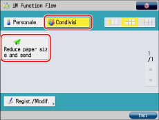 Selezionare [Condivisi] nella schermata delle funzioni principali di iW Function Flow → premere [Reduce paper size and send].