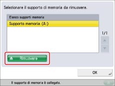 Selezionare la memoria USB da rimuovere → premere [Rimuovere].