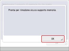 Se non viene visualizzato il messaggio di conferma che consente di rimuovere la memoria USB, ripetere le operazioni dei punti 2 e 3.