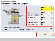 Se viene visualizzata la schermata Selezione carta, selezionare il tipo carta → premere [OK].