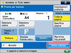 Al termine della stampa, viene rivisualizzata la schermata di selezione supporto memoria.