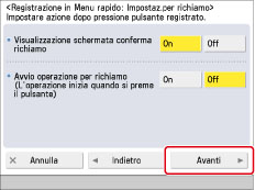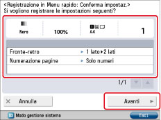 Premere [Menu rapido] sulla macchina nella quale sono state importate le impostazioni → premere il pulsante che contiene le impostazioni registrate.