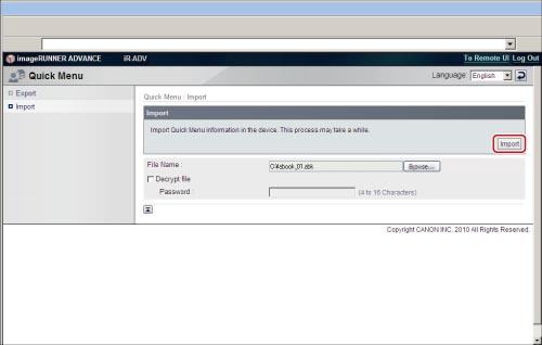 Fare clic su [Import] per visualizzare la pagina di importazione.
