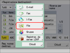 Specificare le impostazioni desiderate nella schermata [Registrazione nuova destinazione: File] → fare clic su [OK].