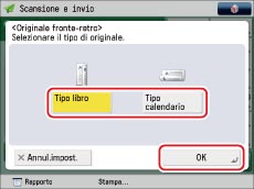 Selezionare [Originale fronte-retro] → specificare il tipo di originale fronte-retro → selezionare [OK].
