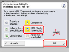 Premere [OCR (Testo ricercabile)] → [OK] → [OK].