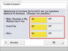 Questo modo consente di limitare l'utilizzo di certe funzioni da parte degli utenti, escludendo le funzioni di copia e stampa soggette alla Gestione ID divisione.