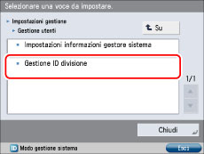 (Impostazioni/Registrazione) → [Impostazioni gestione] → [Gestione utenti] → [Gestione ID divisione].
