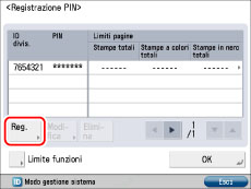 Non è possibile registrare ID divisione o PIN costituiti esclusivamente dal numero zero, ad esempio '0' o '00'. Se si imposta un numero che inizia con degli zeri, gli zeri iniziali vengono ignorati. Per esempio, se si immette '02' o '002', viene registrato '0000002'.