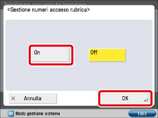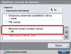 (Impostazioni/Registrazione) → [Impostazione destinazione] → [Gestione numeri accesso rubrica].