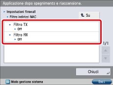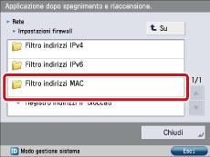 (Impostazioni/Registrazione) → [Preferenze] → [Rete] → [Impostazioni firewall] → [Filtro indirizzi MAC].