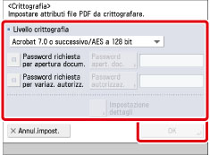 Se si seleziona [Password richiesta per variaz. autorizz.] → premere [Impostazione dettagli] → impostare il livello di crittografia e altre impostazioni.