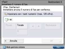 Questo modo richiede l'immissione di un numero di fax e la sua conferma (immissione del numero una seconda volta) per evitare errori di digitazione.