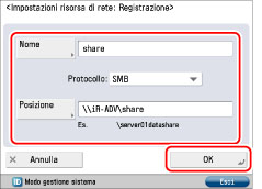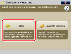 (Impostazioni/Registrazione) → [Impostazioni funzione] → [Memorizzazione/Accesso a file] → [Impostazioni rete] → [Impostazioni risorsa di rete].