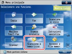 Posizionare gli originali sul vetro di lettura o nell'alimentatore → premere [Scansione e memorizzaz.].