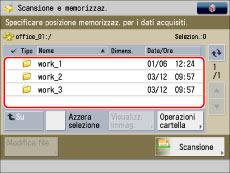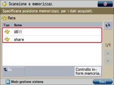 Al termine della scansione, i dati acquisiti vengono memorizzati nell'Area di condivisione specificata.