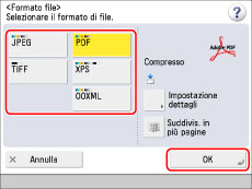 (2) Impostare i formati di file consentiti per la memorizzazione → premere [OK].