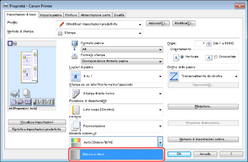 Selezionare [Bianco e nero] dall'elenco a discesa [Modo colore].