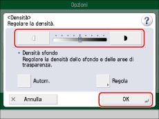 ] per regolare la densità dell'originale → premere [OK] → [Chiudi].