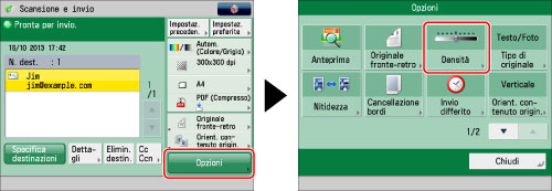 Specificare la destinazione → premere [Opzioni] → [Densità].