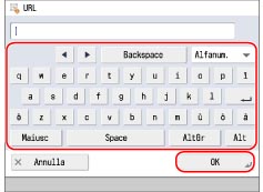 Per le istruzioni relative all'immissione dei caratteri, vedere "Immissione dei caratteri dal pannello digitale".