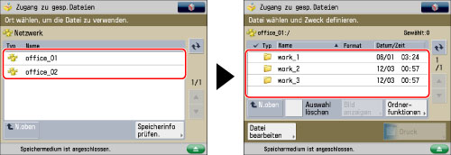 Damit Sie den Netzwerkspeicherort verwenden können, müssen Sie ihn Ihren Anforderungen entsprechend vorher einstellen. Nähere Informationen finden Sie im Abschnitt "Netzwerkeinstellungen".