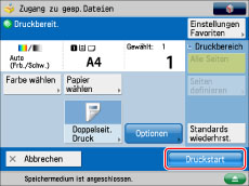 (Stopp) abbrechen.)Um den nächsten Druckauftrag zu reservieren, berühren Sie die Taste [Schließen] → Halten Sie sich an die Vorgehensweise für das Reservieren eines Druckauftrags. (Vgl. Abschnitt "Reservieren von Jobs".)