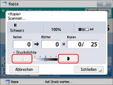 , um die Dichte des Originals zu justieren → Berühren Sie nacheinander die Tasten [OK] → [Schließen].
