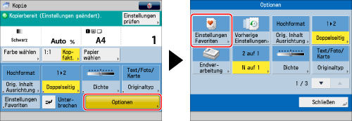 Berühren Sie nacheinander die Tasten [Optionen] → [Einstellungen Favoriten].