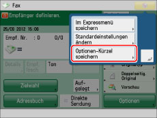 Berühren Sie die Taste [Optionen-Kürzel speichern].